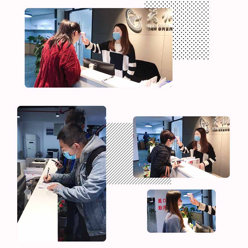 開工后,我公司結(jié)合實(shí)際情況,要求全體員工在工作期間,全程佩戴口罩,每日定時(shí)檢測體溫,做好監(jiān)控和報(bào)告工作,全面落實(shí)了黨中央及國務(wù)院的防控要求,最大限度地阻斷疫情擴(kuò)散渠道。其中,公司針對外省回甬員工視情況進(jìn)行自我隔離并上報(bào)體溫監(jiān)測;外部人員入內(nèi)辦公,經(jīng)前臺登記確認(rèn)、測量體溫、佩戴口罩后方可進(jìn)入辦公;公司公共區(qū)域配備酒精消毒洗手液,保潔人員每天按照要求定時(shí)對公共區(qū)域進(jìn)行消毒并登記。