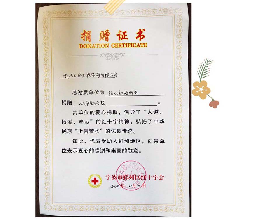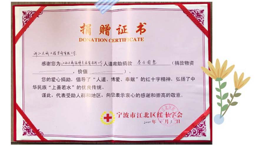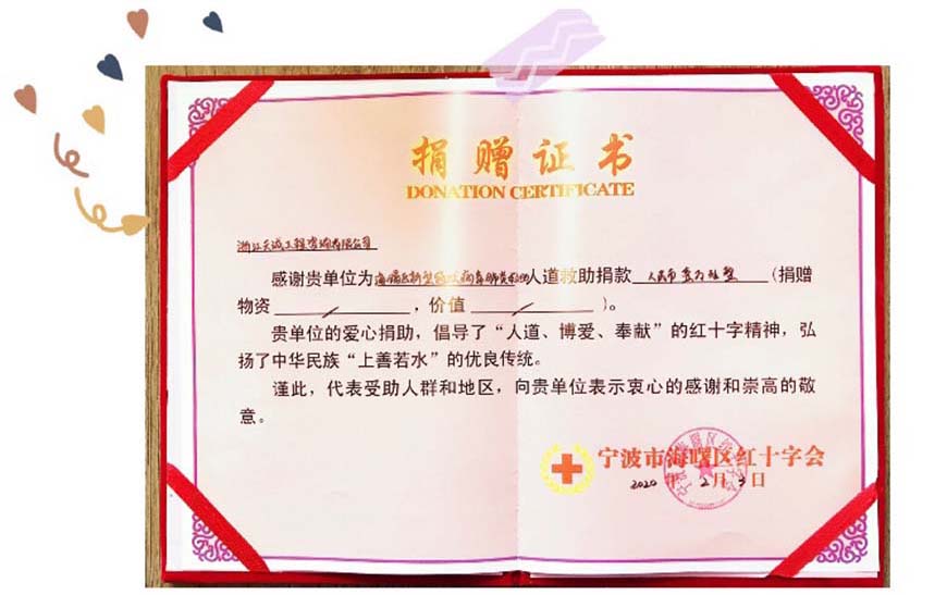 一方有難八方支援,新冠疫情期間,公司為支持防控工作,分別向江北區(qū)、海曙區(qū)及鄞州區(qū)紅十字會愛心捐款共計(jì)六萬元整。我們期待著,當(dāng)陽光再次普照大地,城市會從沉睡中蘇醒;當(dāng)我們摘下口罩,笑容會回到每一個人的臉上。
