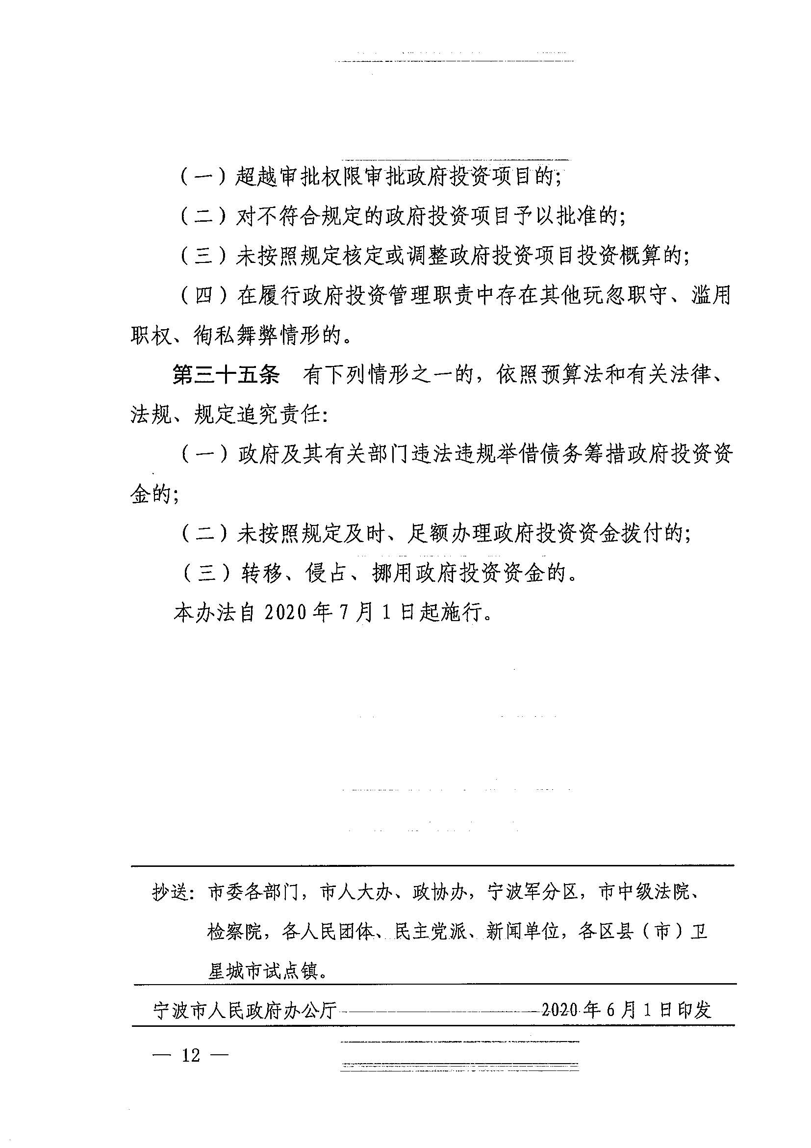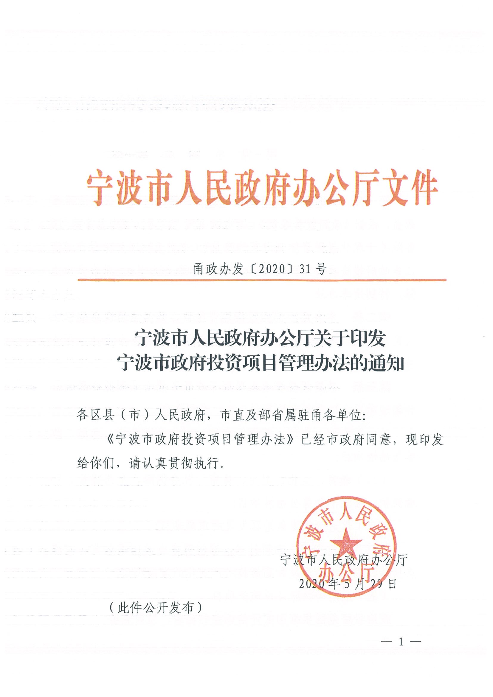 甬政辦發(fā)〔2020]31號(hào)關(guān)于印發(fā)寧波市政府投資項(xiàng)目管理辦法的通知