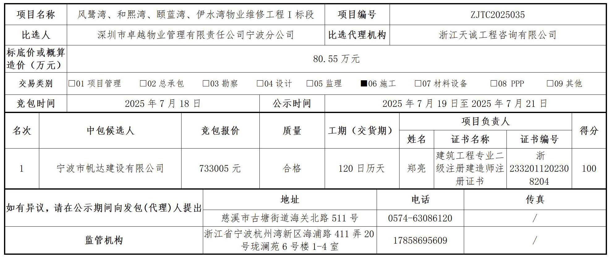 下一條 : 風(fēng)鷺灣、和熙灣、頤藍(lán)灣、伊水灣物業(yè)維修工程II標(biāo)段中包候選人公示